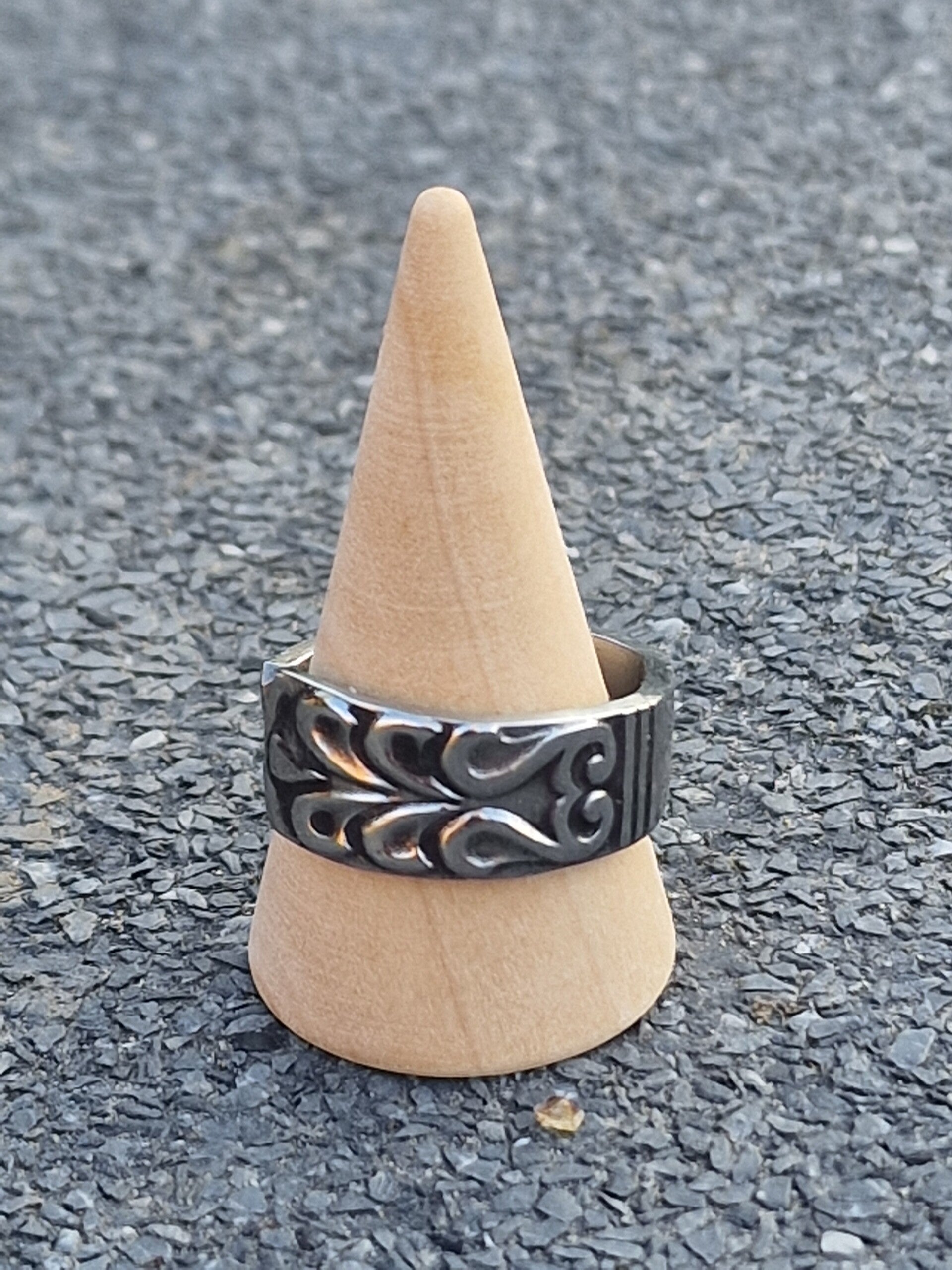 Curls on top. Gekrulde tekens op de bovenkant van de bestek ring. Een echte eye catcher.