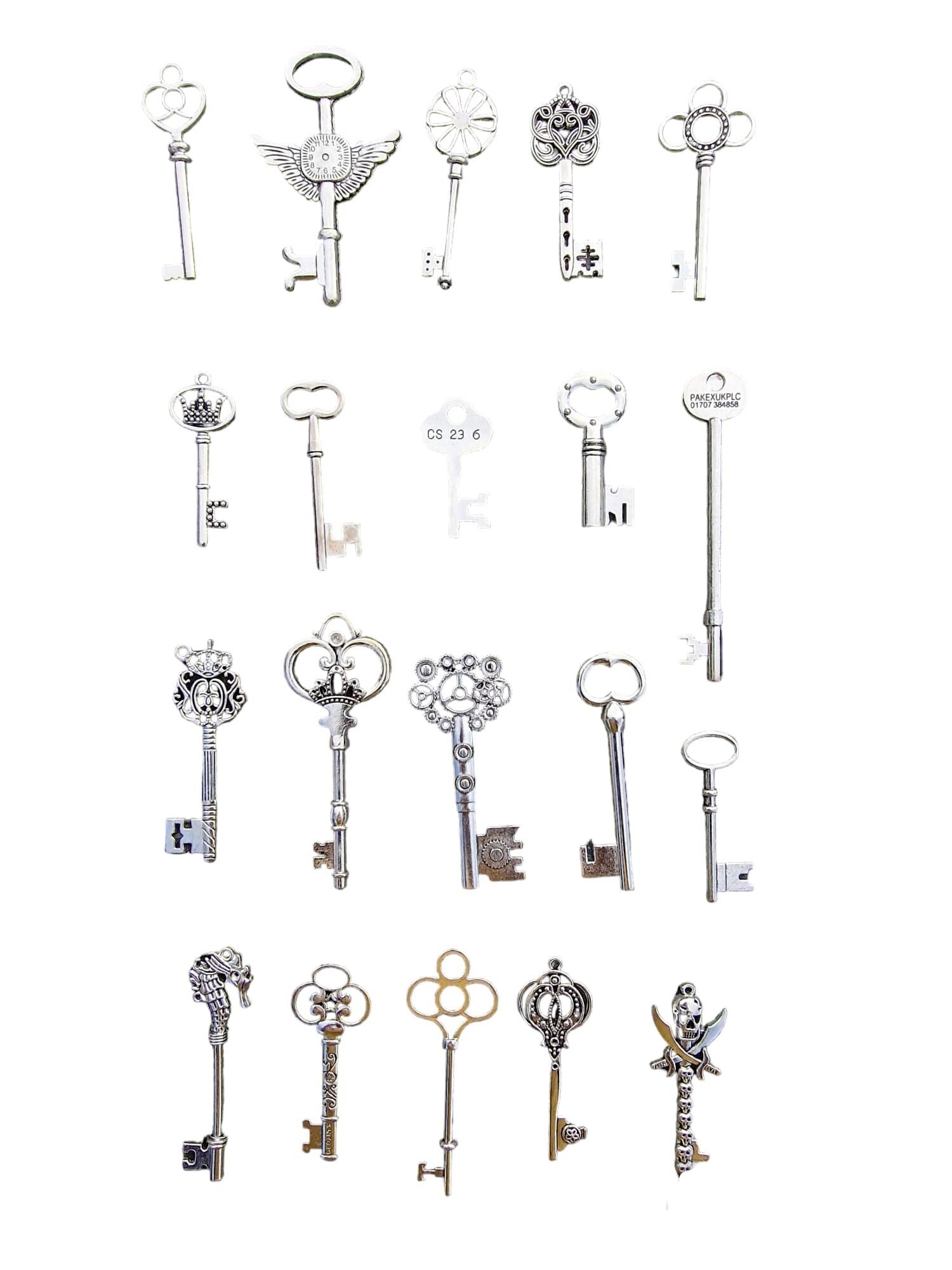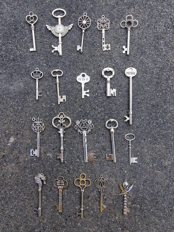 20 grote zilverkleur sleutels. Middelmaat