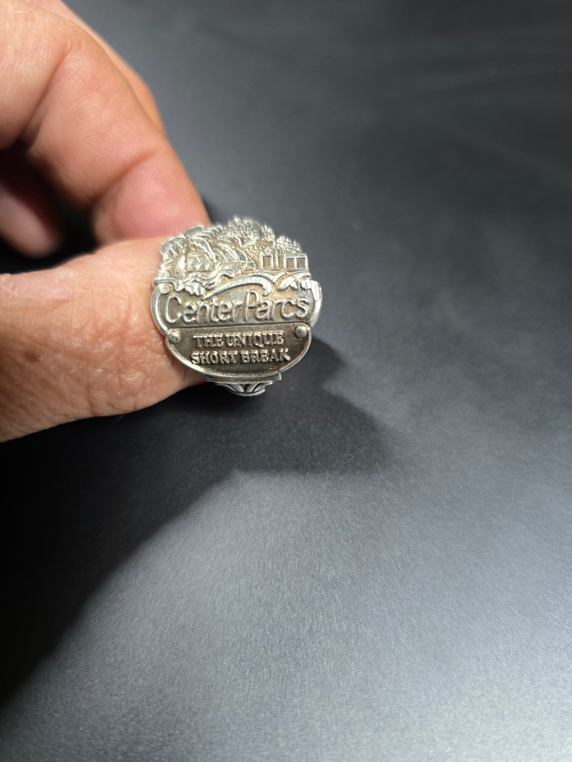 Centerparcs lepelring. Als kind zijn we er allemaal wel een keer geweest en wat is het leuk als je er later een aandenken van heeft. Er is ook nog een emaille ring tenzij verkocht. Hier zit emaille aan de bovenkant en is een hele brede ring in de zin van dat hij 2 vingers bestrijkt omdat je namelijk emaille niet kan buigen, dan zou het breken. Kijkt u gerust nog even verder naar de andere ringen, er is zoveel keus voor u.